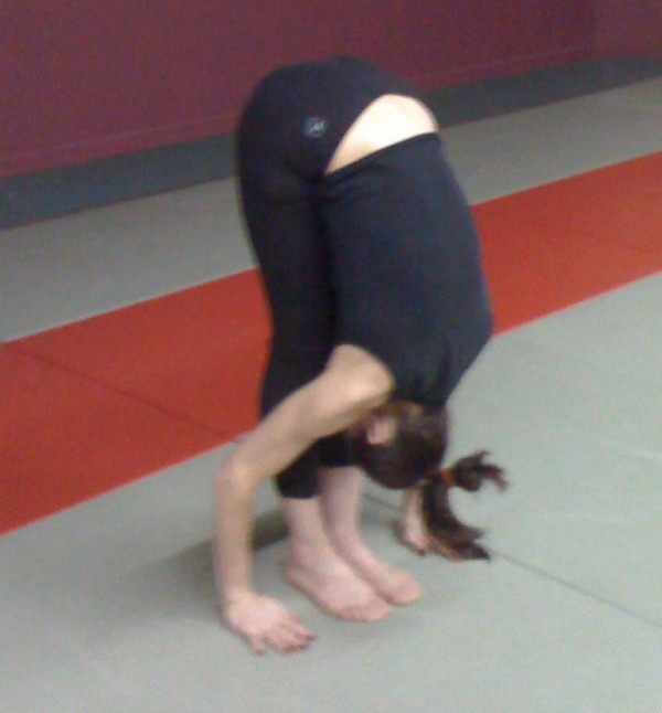 en Sanskrit : Padahastasana: la posture de la cigogne.