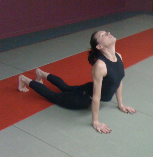 Si cela est nécessaire décollez le bassin du sol, par la pratique régulière de Surya Namaskara le dos s’assouplira et l’on pourra laisser le bassin au sol sans forcer.